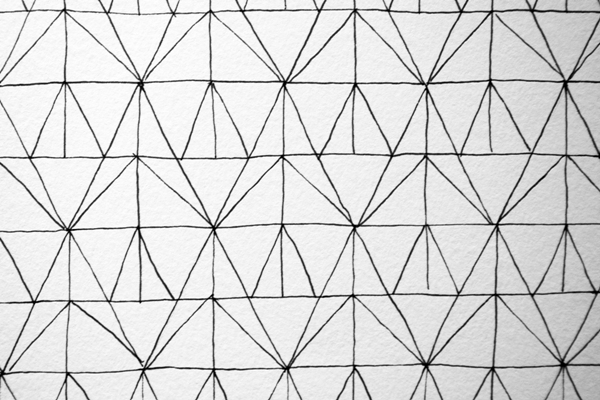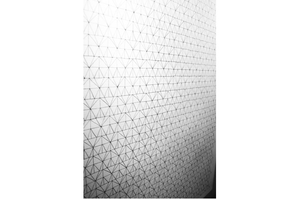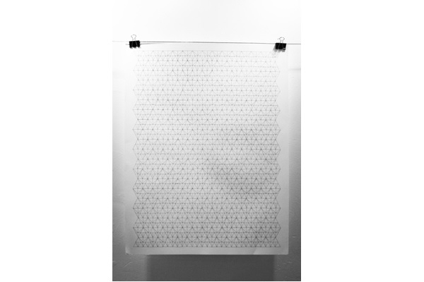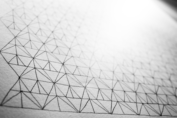 Intégration --- Suite à la réalisation d'un pliage en papier, création d'une composition reprenant ses formes, se rapprochant alors d'une trame. |