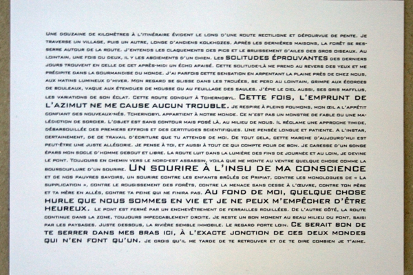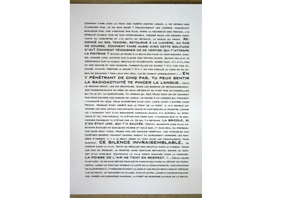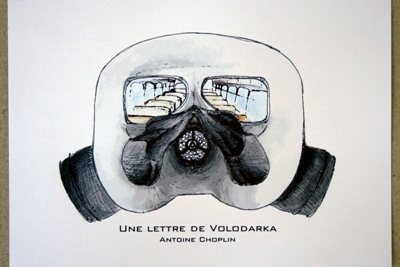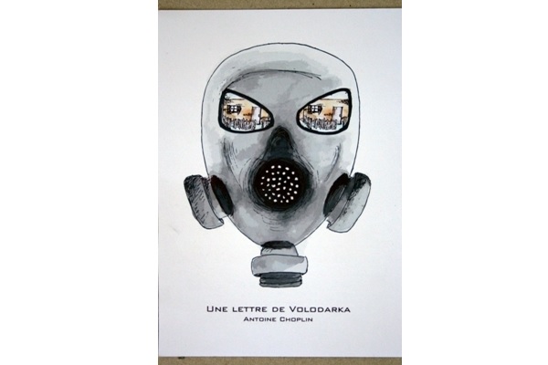 Une lettre de Volodarka --- Réalisation d'un objet graphique à partir d'un texte, "Une lettre de Volodarka" de Antoine Choplin, faisant référence aux accidents nucléaires. J'ai choisi de réaliser des masques à gaz vus de l'intérieur dans lesquels se trouvent des illustrations du texte, afin que les personnes face à ces masques à gaz se retrouvent plongés à la place de l'écrivain. |